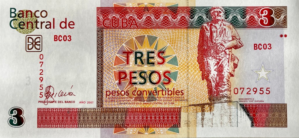 As of July 21, 2021 the convertible peso (CUC), became obsolete and was no longer issued or accepted by businesses. Thus, the Cuban peso (CUP), prevailed as the sole currency of the nation. One of the telling differences between the regular and convertible pesos are the subjects they feature; portraits of various political, cultural and intellectual figures are seen regular pesos whereas statues of these very figures adorn the convertible pesos. One such figure is Ernesto Guevara, or more commonly known as “Che Guevara” or simply “El Che” who appears on the 3 denomination notes, the main subject of this post.